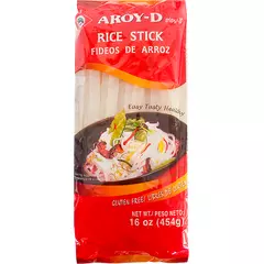 Рисовая лапша Aroy-D шириной 10 мм — идеальна для азиатских блюд, воков и супов. Без глютена, быстро готовится.