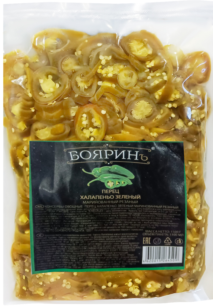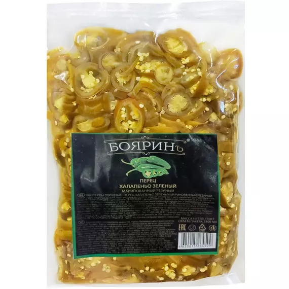 Перец Халапеньо маринованный, резаный Бояринъ, пакет 1100 мл/900 г