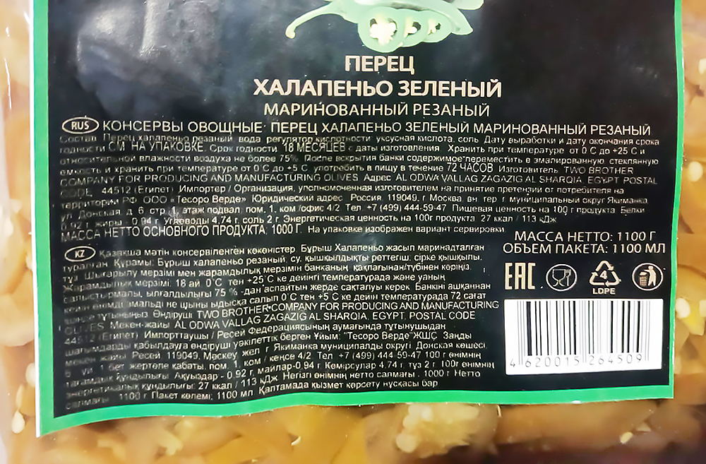 перец халапеньо резаный, вода, регулятор кислотности: уксусная кислота, соль, уплотнитель: хлорид кальция, консервант: бензоат натрия.