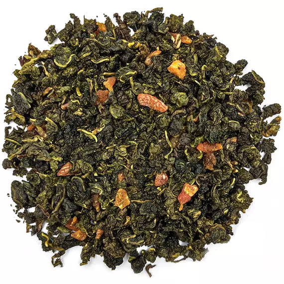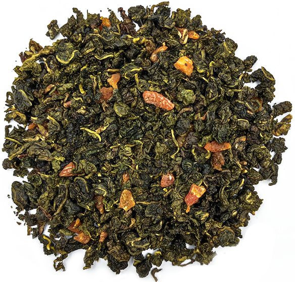 Улун 68%, черный чай 23%, ароматизаторы, кусочки персика (персик, рисовая мука), лепестки календулы, лепестки сафлора красильного