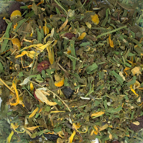 ромашка, розмарин, боярышник, барбарис, цветы липы, лепестки подсолнуха, цветы бузины, лист ореха, зверобой, душица, мяты и мелисса