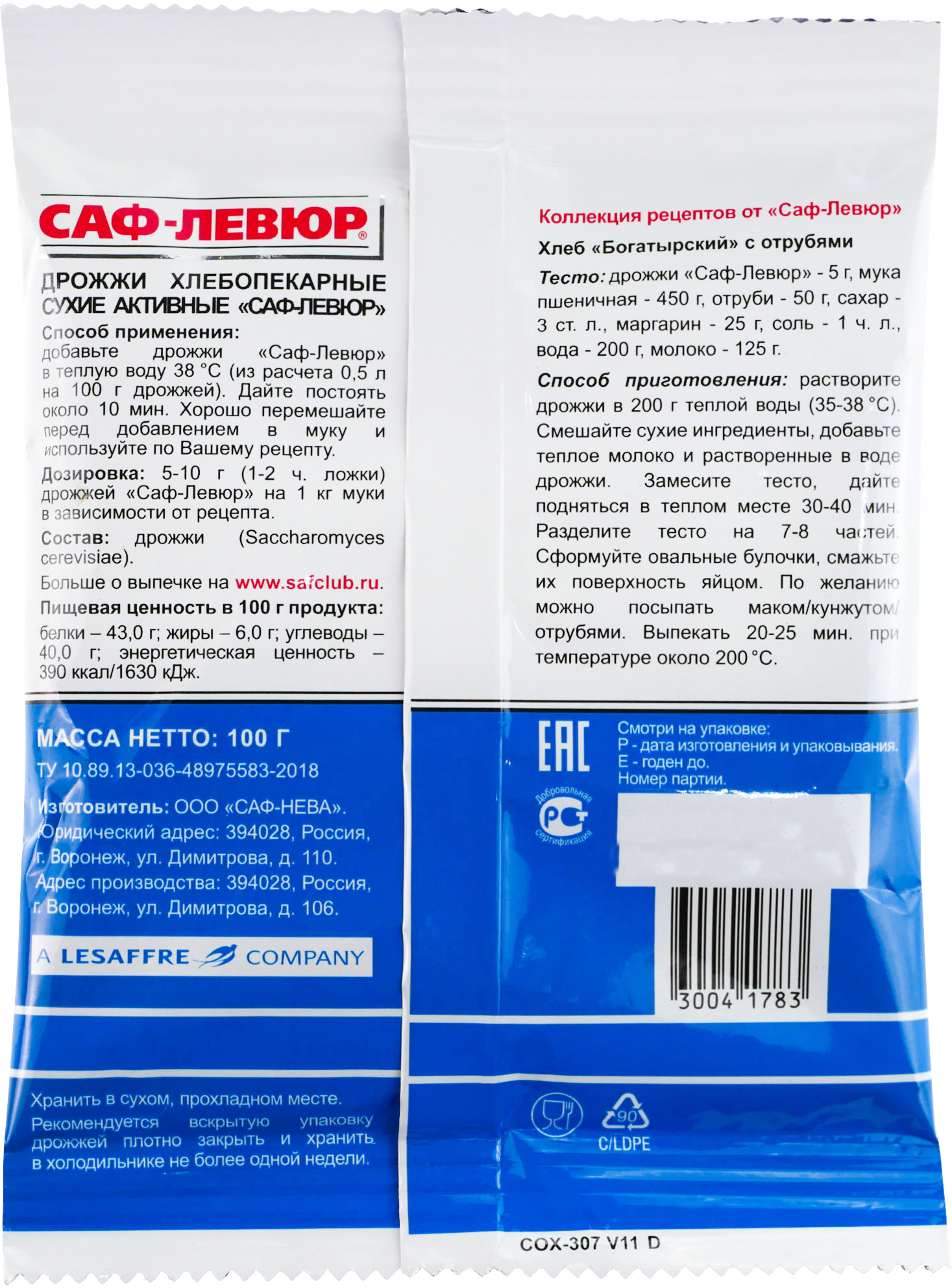 Саф-Левюр - универсальные дрожжи, с помощью которых можно приготовить любую дрожжевую выпечку, а также домашние традиционные напитки. Лучше всего подходят для выпечки с небольшим содержанием сахара и жира, такие как пшеничный и ржано-пшеничные хлеба.