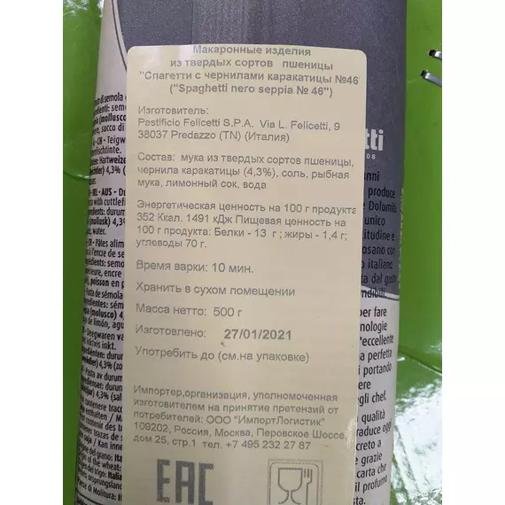 Спагетти из твердых сортов пшеницы с чернилами каракатицы 500гр