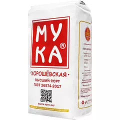 Мука "Хорошёвская" высший сорт (2 кг) — пшеничная мука из отборного зерна, идеально подходит для хлеба, пирогов и другой домашней выпечки.