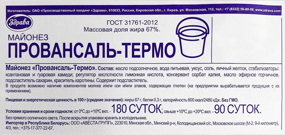 Майонез 67%, ведро 5 литров, ТМ Здрава