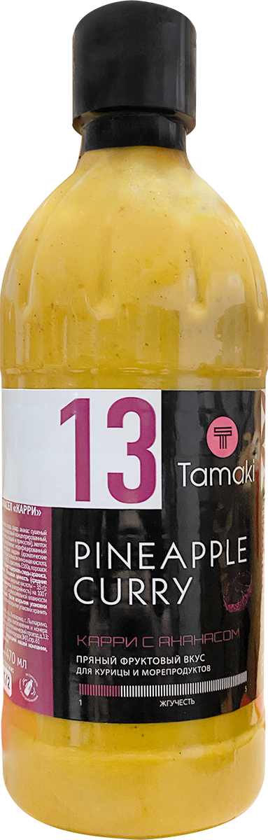 Соус карри с ананасом Tamaki отличается тем, что изготавливается из свежего ананаса. Это не консервированный, не сушенный, а именно свежемороженый ананас. Ананас бережно размораживается и взбивается в нежную эмульсию. Кремовая консистенция обволакивает все ингредиенты блюда, связывая их в единое целое.