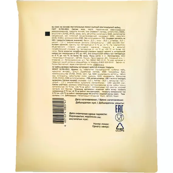 хранить при температуре от 0 до +6. На предприятиях общественного питания допускается хранение в закрытой упаковке при температуре от +6 до +30 °C не более 120 часов. После вскрытия продукт хранить в холодильнике при температуре от 0 до +6°C