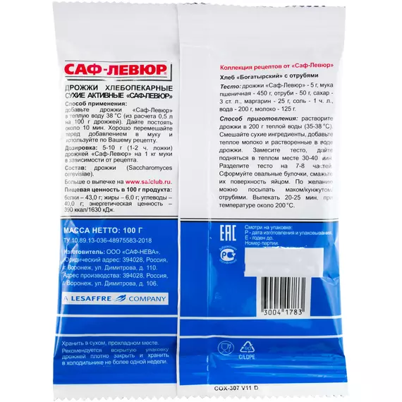Саф-Левюр - универсальные дрожжи, с помощью которых можно приготовить любую дрожжевую выпечку, а также домашние традиционные напитки. Лучше всего подходят для выпечки с небольшим содержанием сахара и жира, такие как пшеничный и ржано-пшеничные хлеба.