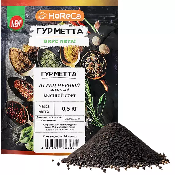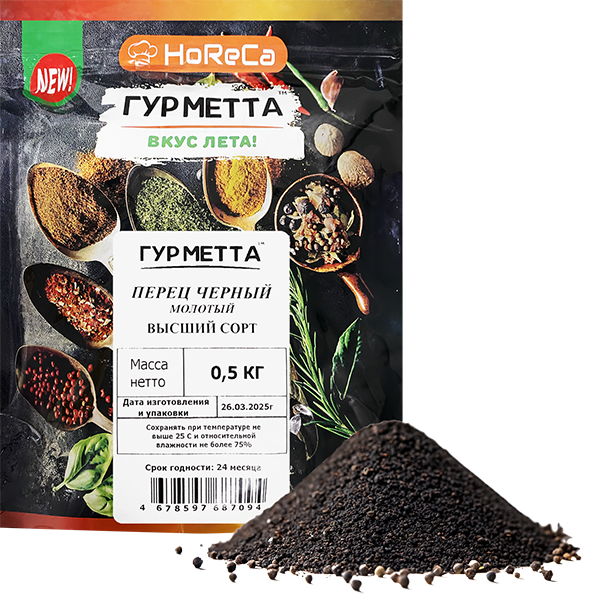 Перец черный молотый в/с пакет 500 г, Гурметта