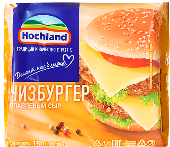 Оптимальная толщина и вес каждого ломтика в удобной укладке снижает себестоимость и повышает качество готового блюда, благодаря чему сыр «Хохланд чизбургер» признан всеми ведущими сетями ресторанов быстрого обслуживания в России, а компания Hochland является одним из самых крупных в мире поставщиков ломтиков плавленого сыра для HoReCa.