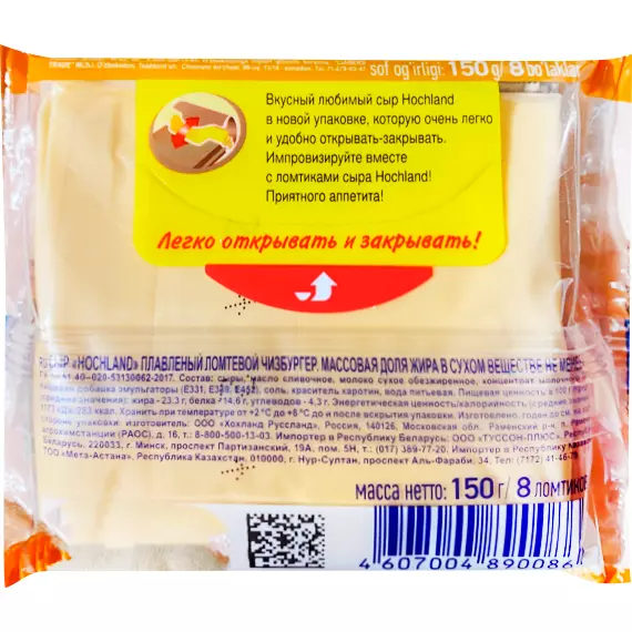 Сыр плавленый Чизбургер (Хохланд) с массовой долей жира 45%, 8 ломтиков