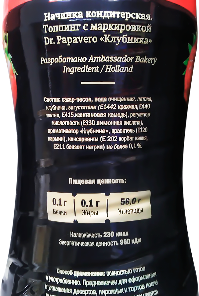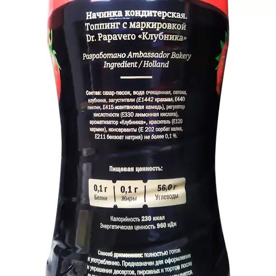 Топпинг Dr. Papavero имеет высокую степень вязкости, содержит около 40-65% сухих веществ. Обладает насыщенным, ярким вкусом.