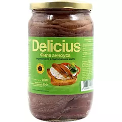 Анчоусы филе в подсолнечном масле 700г/400 г Delicius