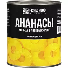 Сочные ананасы кольцами Fish&Food 850 мл / 490 г из Таиланда — в собственном соку, без консервантов. Идеальны для десертов, пиццы и закусок.