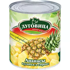 Ананас кусочки Луговица, ж/б 850 мл (430 г), Вьетнам. Сочные кусочки в сиропе для десертов, салатов и выпечки. Доставка по Крыму и Севастополю.