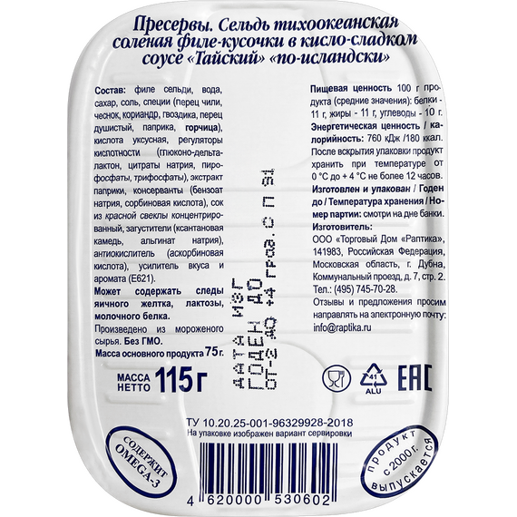Сельдь Раптика По-исландски в кисло-сладком соусе Тайский 115г