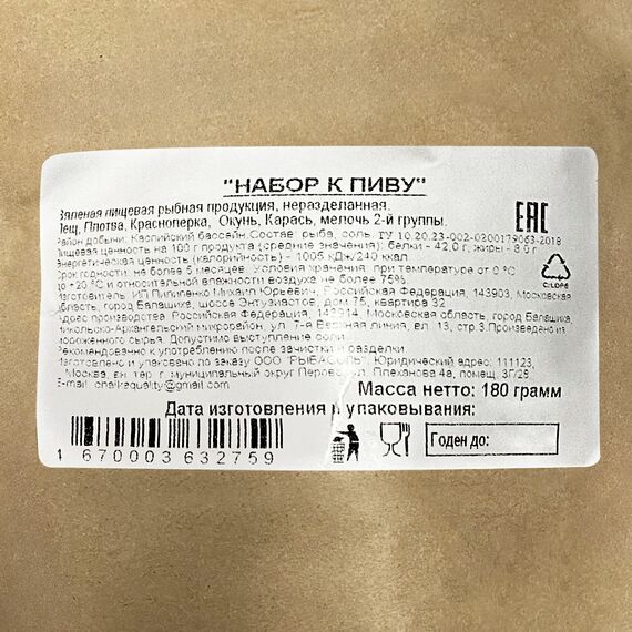 Пивной набор 180 грамм, ТМ ""Rыба&Sоль"