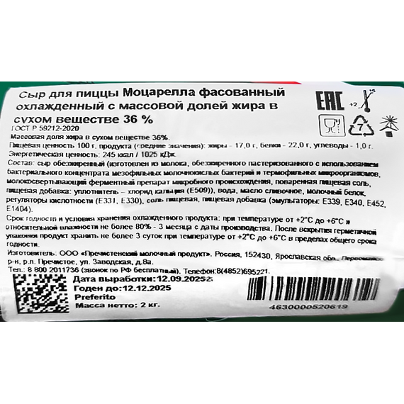Сыр Моцарелла Preferita Пречистое 36% (батон 2 кг) — это высококачественный полутвердый сыр с мягкой тягучей структурой и насыщенным сливочным вкусом. Производится из отборного молока по итальянским технологиям, что обеспечивает идеальную консистенцию и отличные плавящиеся свойства.