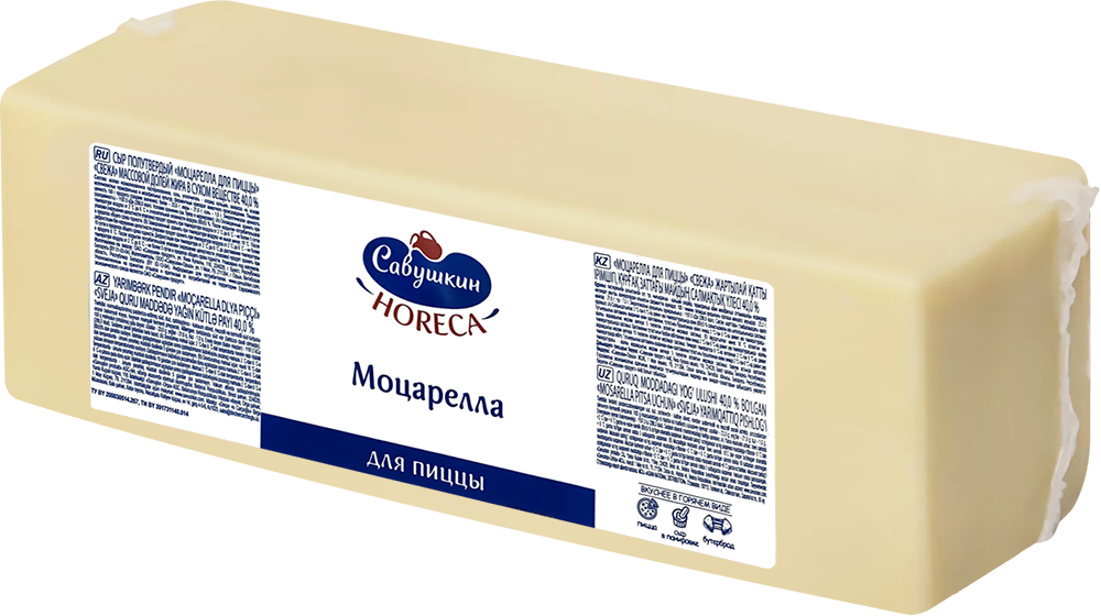 Сыр Моцарелла Савушкин "Свежа" ХАЛЯЛЬ жирность 40% брус от 2,5 кг