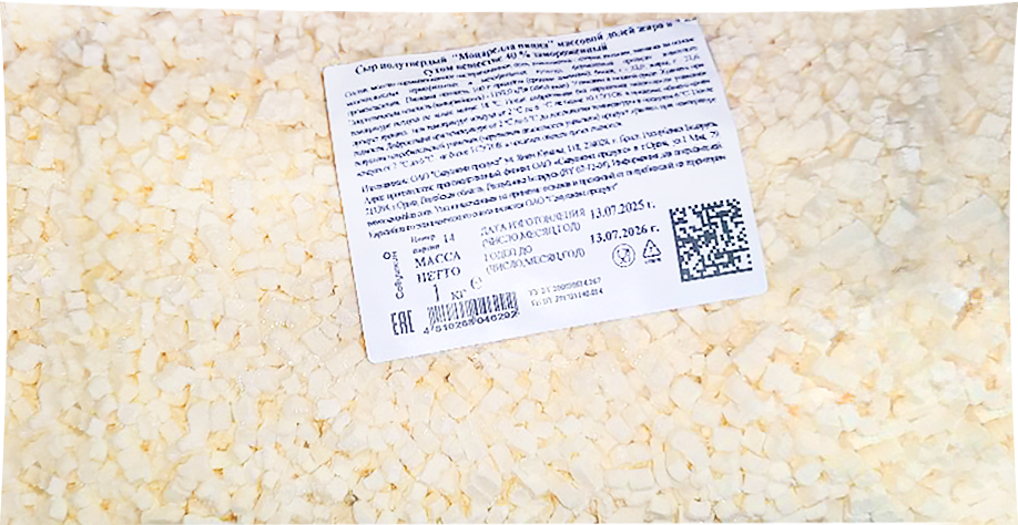 Благодаря форме нарезки в кубиках, сыр идеально подходит для пиццы, пасты, салатов, горячих и холодных закусок. Быстрая шоковая заморозка сохраняет свежесть, вкус и пластичность продукта, что делает его удобным для использования в кафе, ресторанах и домашней кухне.