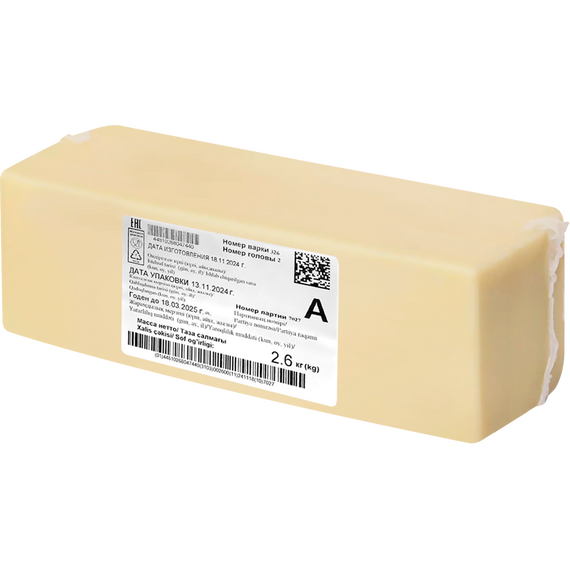 Изготовлен из отборного коровьего молока без искусственных добавок — только чистый, натуральный состав. Нежная текстура и деликатный вкус делают этот сыр универсальным ингредиентом как для домашней кухни, так и для профессионального использования.