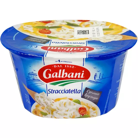 Сыр Страчателла Galbani — это нежнейший итальянский сыр с кремовой текстурой и насыщенным сливочным вкусом. Производится по традиционной технологии и представляет собой сочетание тонких волокон моцареллы, смешанных со свежими сливками. Благодаря жирности 52% страчателла обладает особенно мягкой, тающей консистенцией и выразительным молочным ароматом.