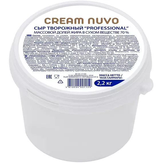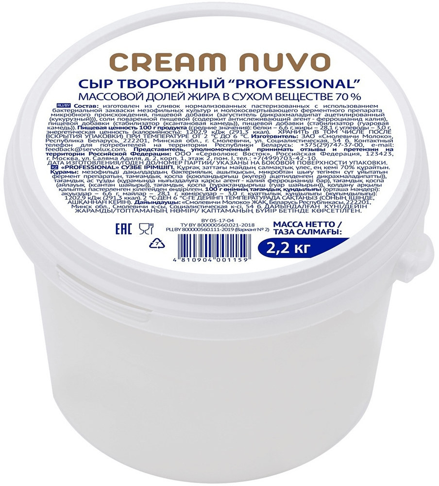 Сыр творожный Серволюкс Professional массовой долей жира в сухом веществе 70% объем 2,2 кг.