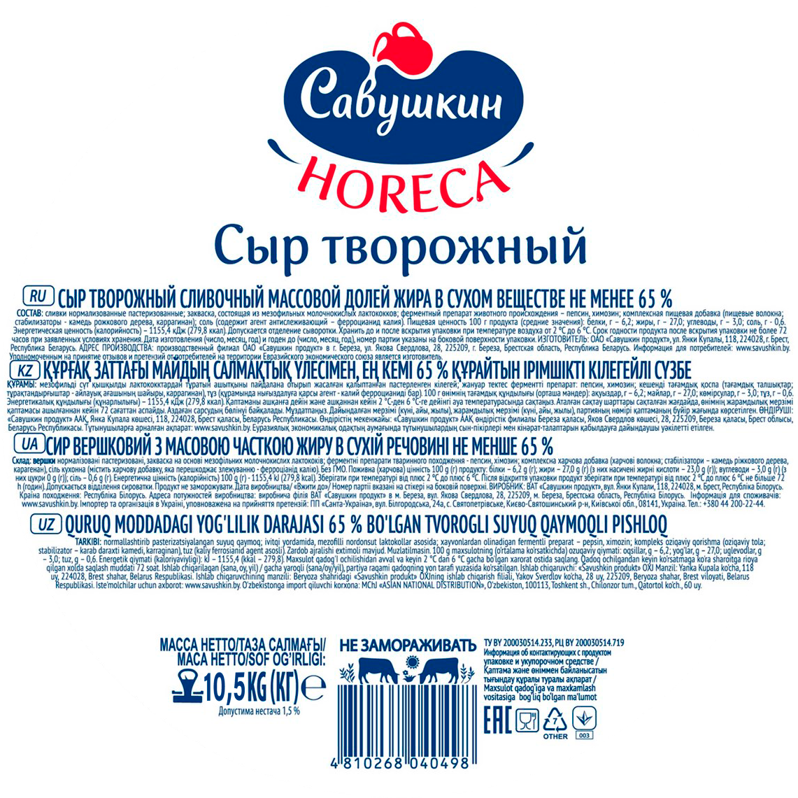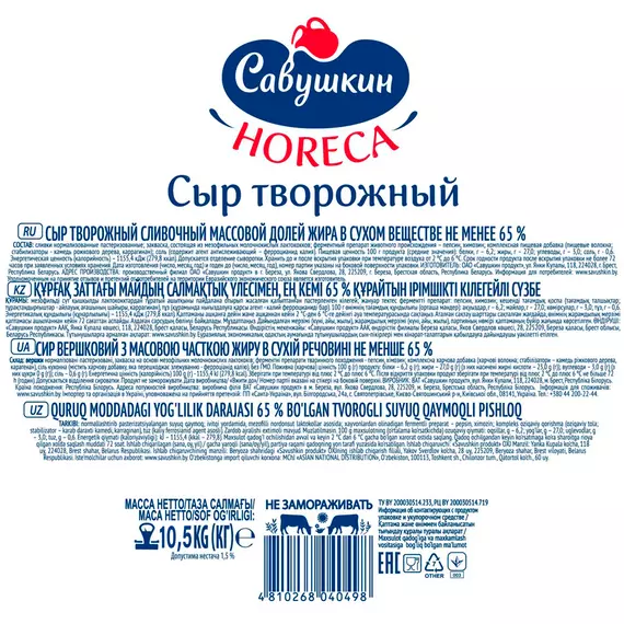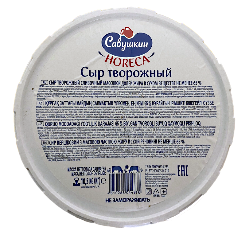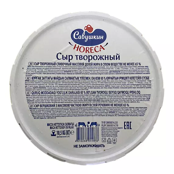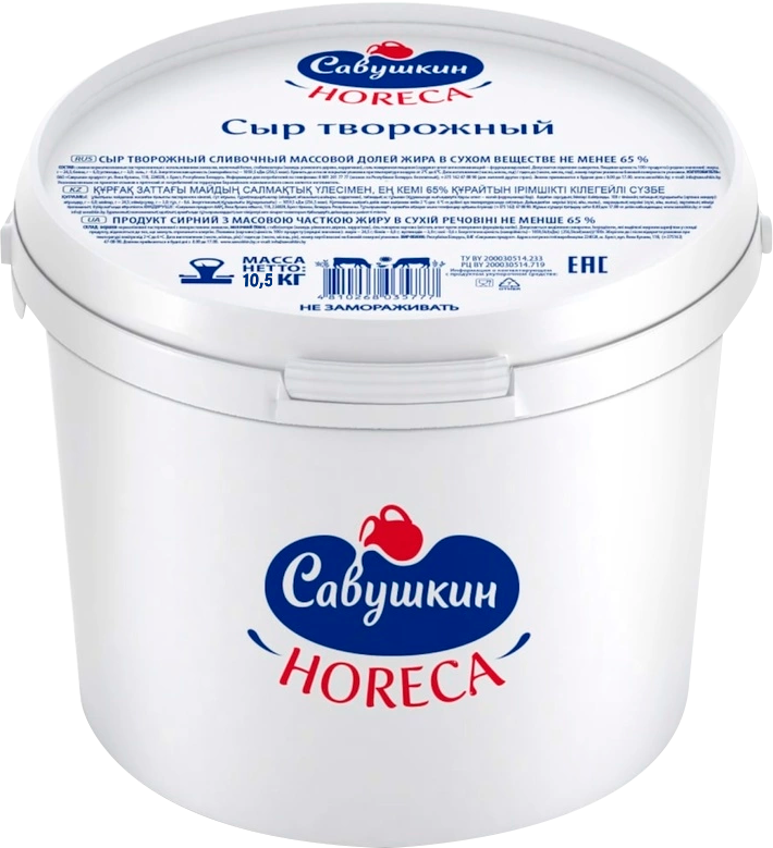 Сыр творожный Савушкин жирность 65%, ведро 10,5 кг