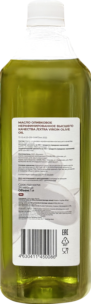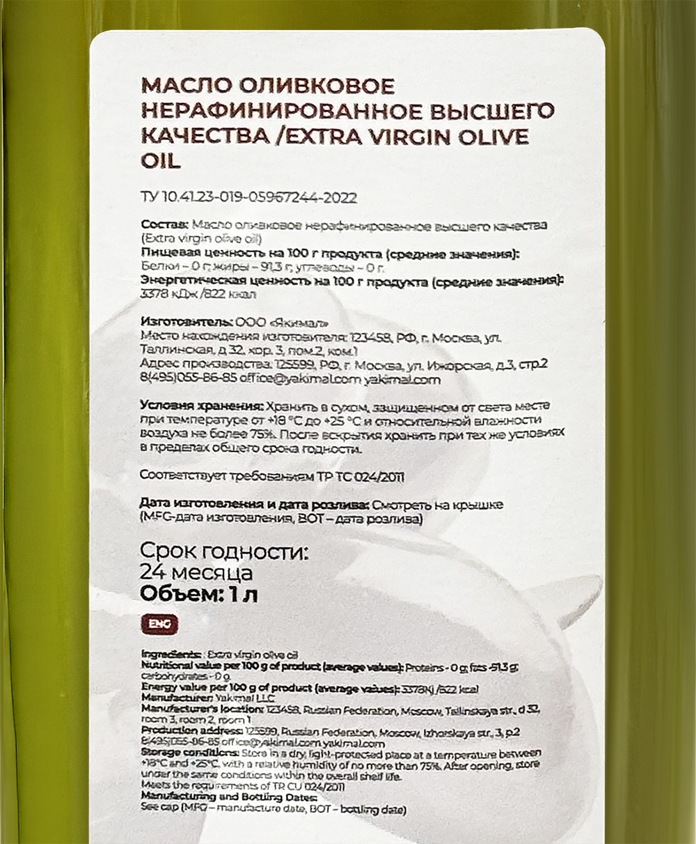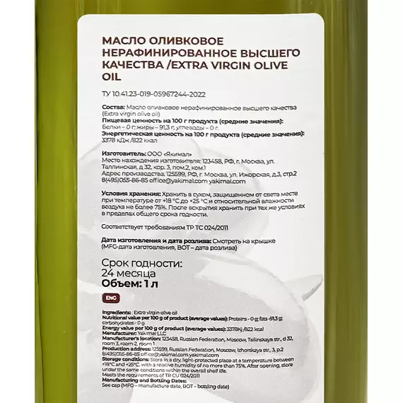 Масло оливковое нерафинированное Extra Virgin Yakimal, 1л
