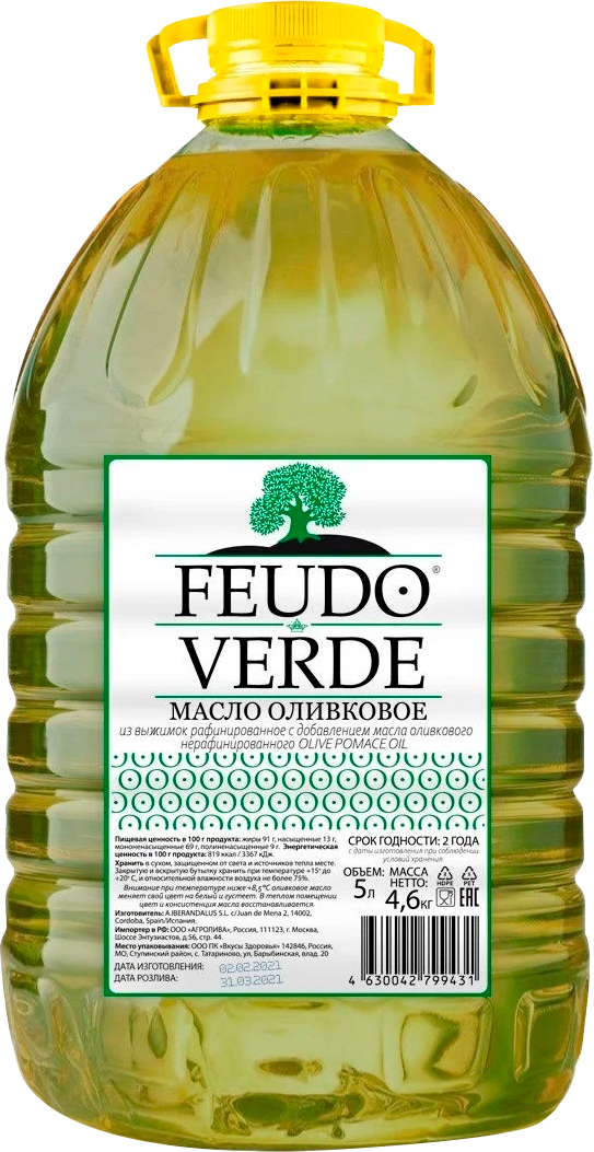 Масло оливковое Premium Blend Feudo Verde с добавлением подсолнечного, пл/б 5 л