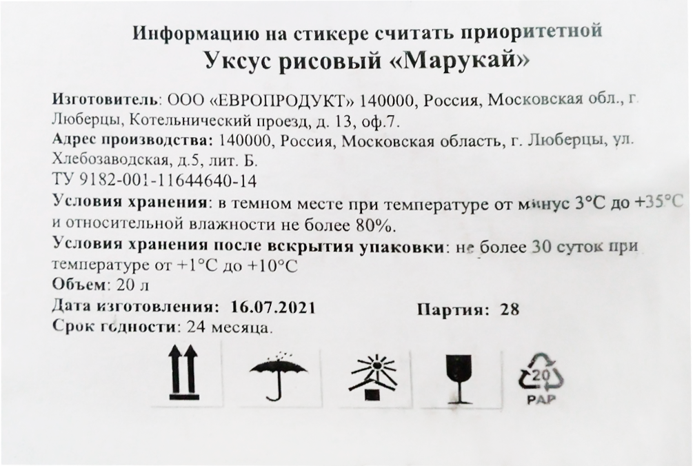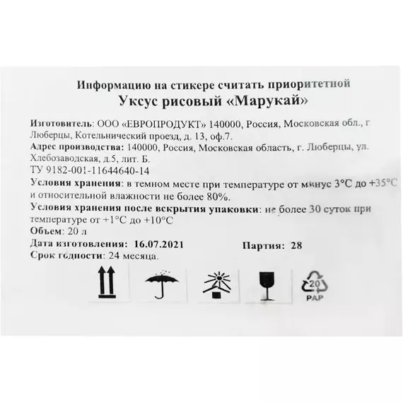 вода, кислота уксусная пищевая, уксус рисовый, сахар, соль, краситель пищевой синтетический. Массовая концентрация уксусной кислоты 4.5%