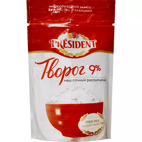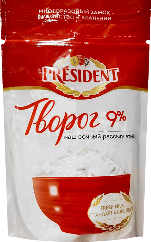 Творог Рассыпчатый Президент жирность 9% 900 г