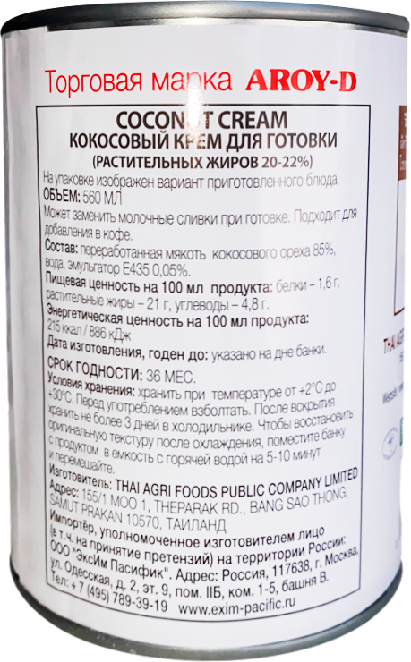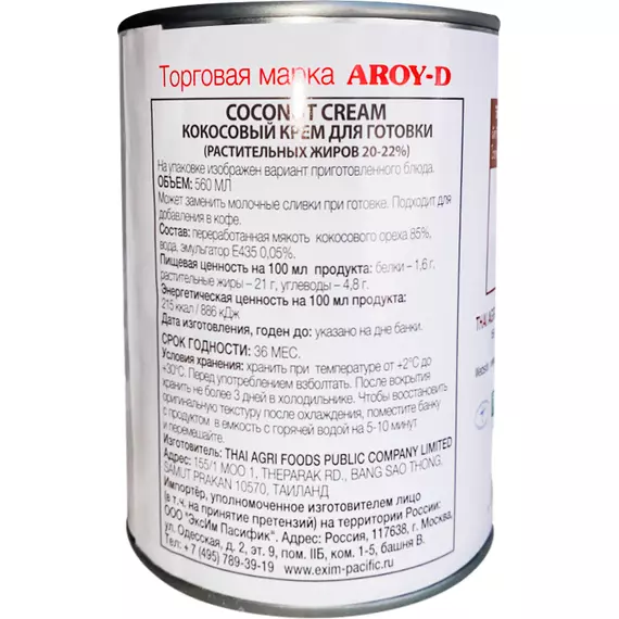 Кокосовые сливки Aroy-D 70% Таиланд 560 мл, кокосовый крем для готовки
