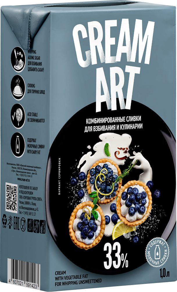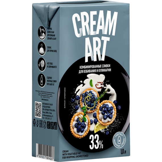 - Горячие кремы и десерты (крем-брюле, ганаш, карамель). Сливки CREAMART 33% с достоинством выдержат запекание и карамелизацию, сохраняя текстуру и вкус десерта