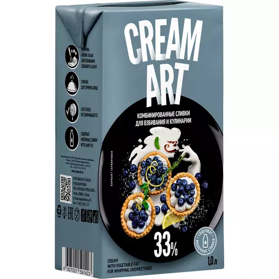 Сливки растительные КремАрт (CreamArt) (крем на растительных маслах) 33%, 1 л