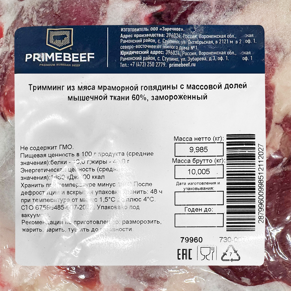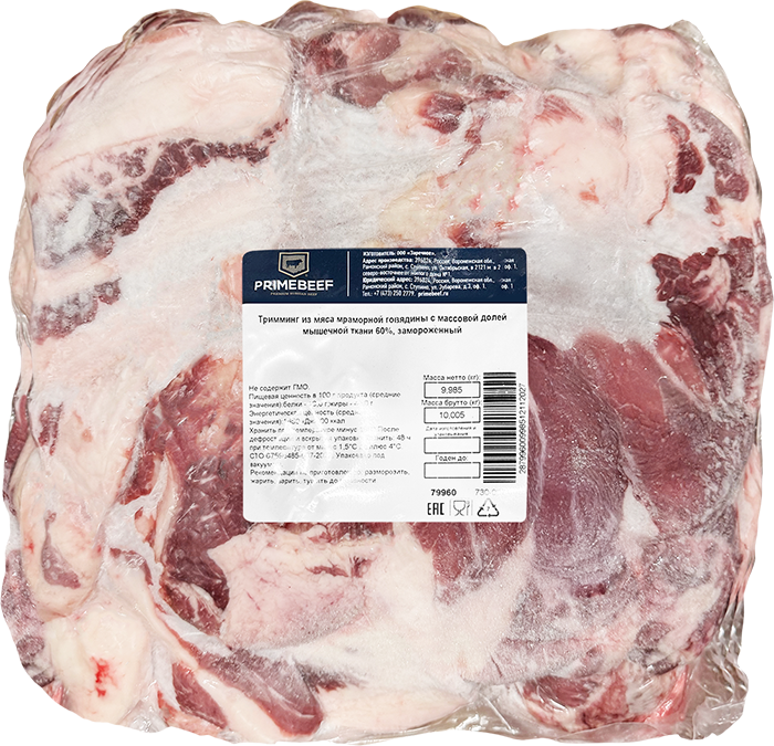 Говядина Котлетное мясо без кости тримминг кат. Б (60/40) Праймбиф (79960) замороженное, вакуум, вес ~10кг