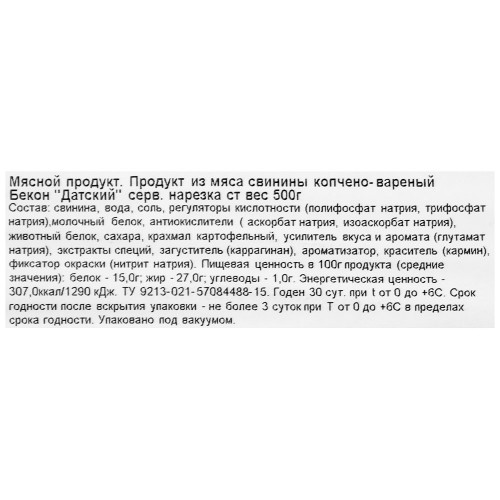Дымов Бекон "Датский", варено-копченый, нарезка 0,5 кг, вакуумная упаковка