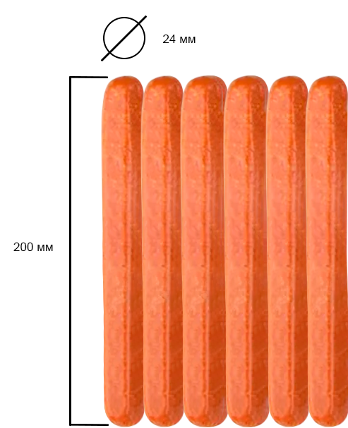 Сочная и нежная по текстуре говяжья сосиска для хот-дога. Форма и параметры: длина – 200 мм, диаметр 24 мм, вес – 80 гр.