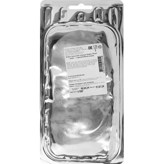 Свинина, шпик, нитритно-посолочная смесь (соль, фиксатор окраски нитрит натрия), декстроза, пряности, экстракты пряностей (с сельдереем), перец черный, антиокислители аскорбиновая кислота, изоаскорбат натрия, красители кармины, гемоглобин, стартовая кульутра