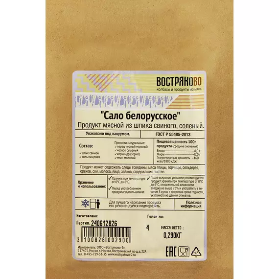 Продукт из шпика свиного соленый "Сало белорусское"