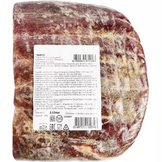 Подлинный шедевр кулинарного мастерства, уникальный вкус которого в состоянии очаровать даже самых взыскательных гурманов. Для приготовления этого аппетитного угощения требуется более года, поэтому «Окорок сыровяленый» ценится так же высоко, как хорошо выдержанное вино.