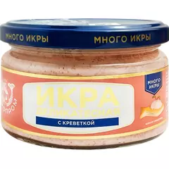 Деликатесная икра на основе икры мойвы и сельди с добавлением мяса креветки и нежного соуса. Мягкий вкус и кремовая текстура.