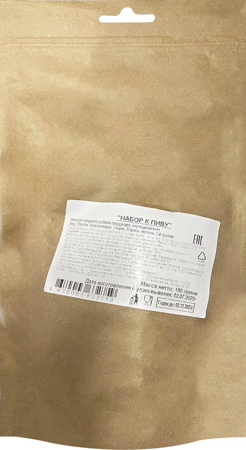 В составе набора лещ, плотва, окунь, карась, красноперка. Район добычи - Каспийский бассейн.