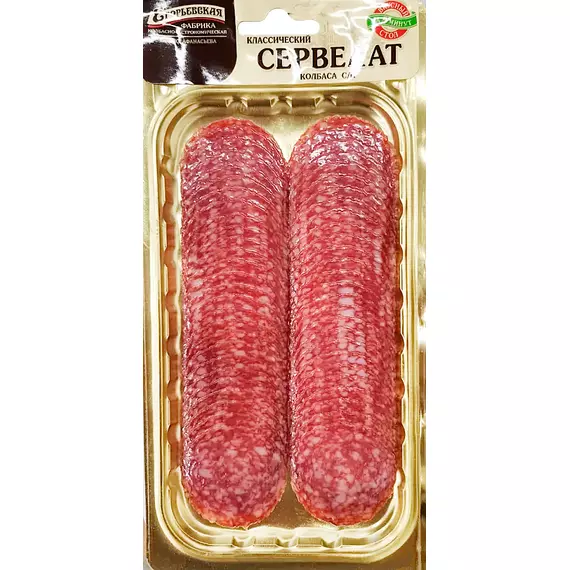 Колбаса сырокопченая Сервелат Классический нарезка, Егорьевска фабрика, 100 г
