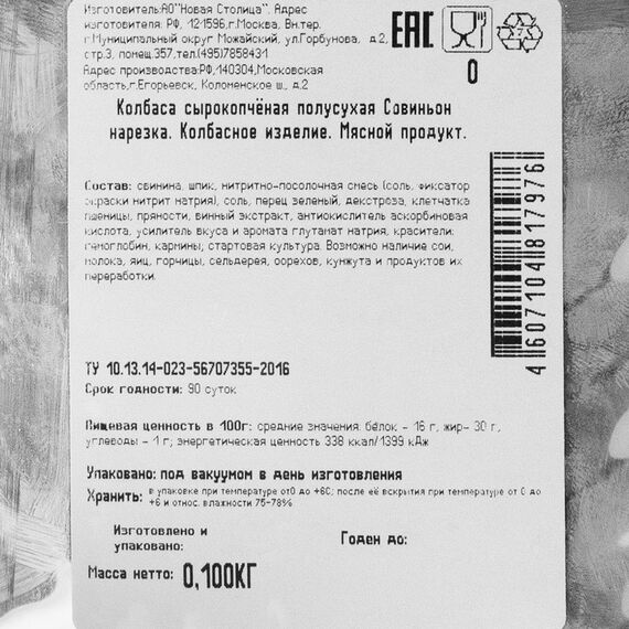Колбаса сырокопченая Совиньон нарезка, Егорьевска фабрика, 100 г