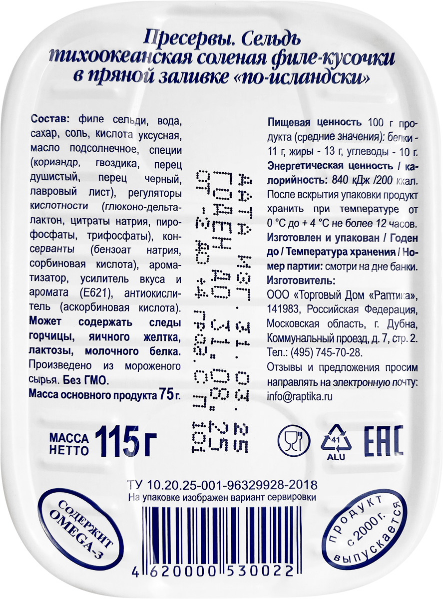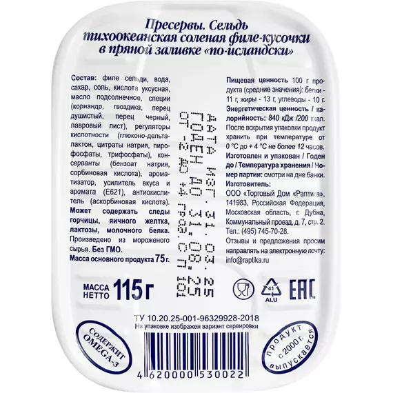 Сельдь Раптика По-исландски в пряной заливке 115г