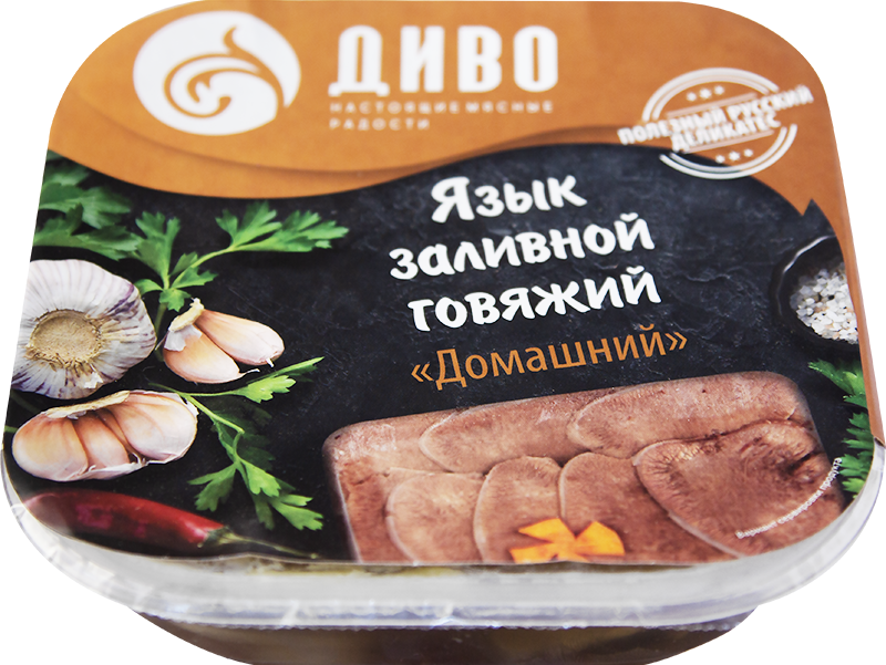 Язык заливной говяжий «Домашний» — это классическая холодная закуска, приготовленная из отборного говяжьего языка с добавлением натурального мясного бульона и специй. Продукт отличается нежной текстурой, насыщенным вкусом и аккуратной формой, идеально подходящей для сервировки.