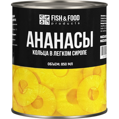 Сочные ананасы кольцами Fish&Food 850 мл / 490 г из Таиланда — в собственном соку, без консервантов. Идеальны для десертов, пиццы и закусок.