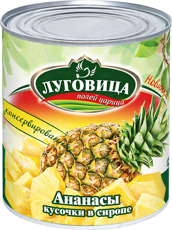 Ананасы кусочками Луговица — это спелые тропические фрукты в лёгком сиропе, нарезанные аккуратными кусочками и готовые к использованию. Производство — Вьетнам, регион с идеальными условиями для выращивания ананасов.