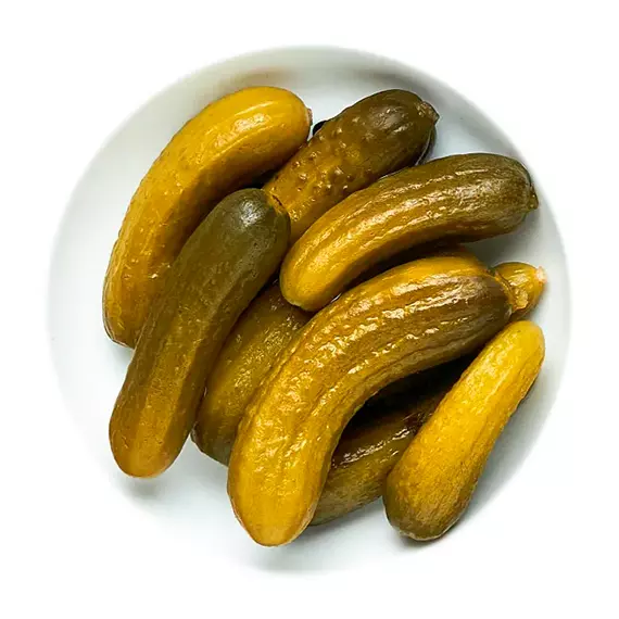 Калиброванные огурцы с добавлением пряно-сладкой уксусной заливки. Можно использовать как самостоятельное блюдо, также идеально подходят для закуски, добавлять в супы и солянку, входят с состав соусов собственного производства.